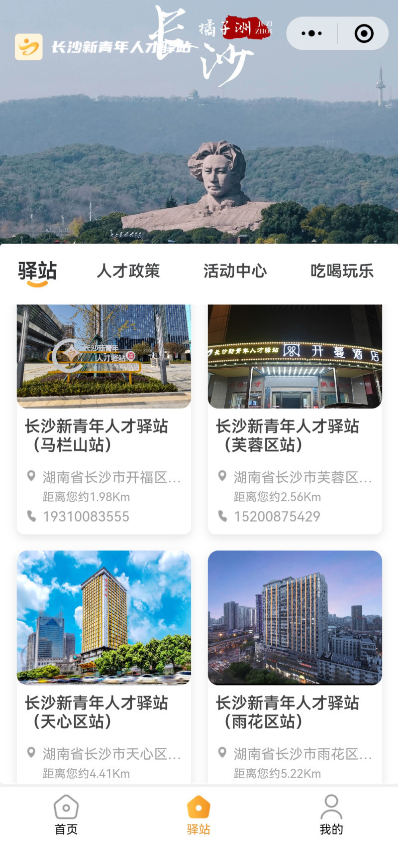 长沙新青年人才驿站小程序界面。