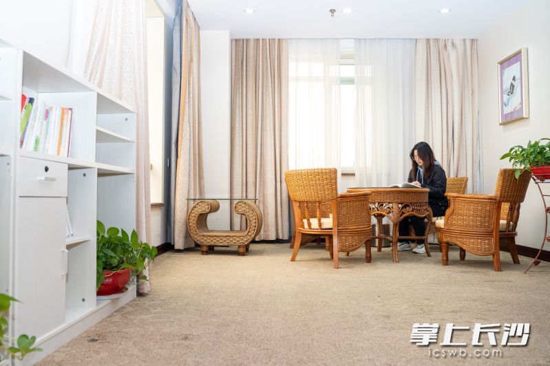 在位于尖山湖公园旁的长沙新青年人才驿站(湖南湘江新区站)里,明亮整洁的公共区域让人眼前一亮。这里还放置了书架,上面摆满了就业指导资料、城市生活指南以及各类书籍,方便求职者随时查阅。房间里设施齐全,布置温馨,冰箱、洗衣机、空调、热水器、一次性洗漱用品等一应俱全,驿站管理方还贴心地为求职者配备了免费网络、长沙市人才相关政策解读资料等。